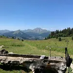 Die 4-Zimmer- Chalet Yuki Morzine verfügt über Parkplätze und eine Terrasse mit Aussicht auf die Berge.